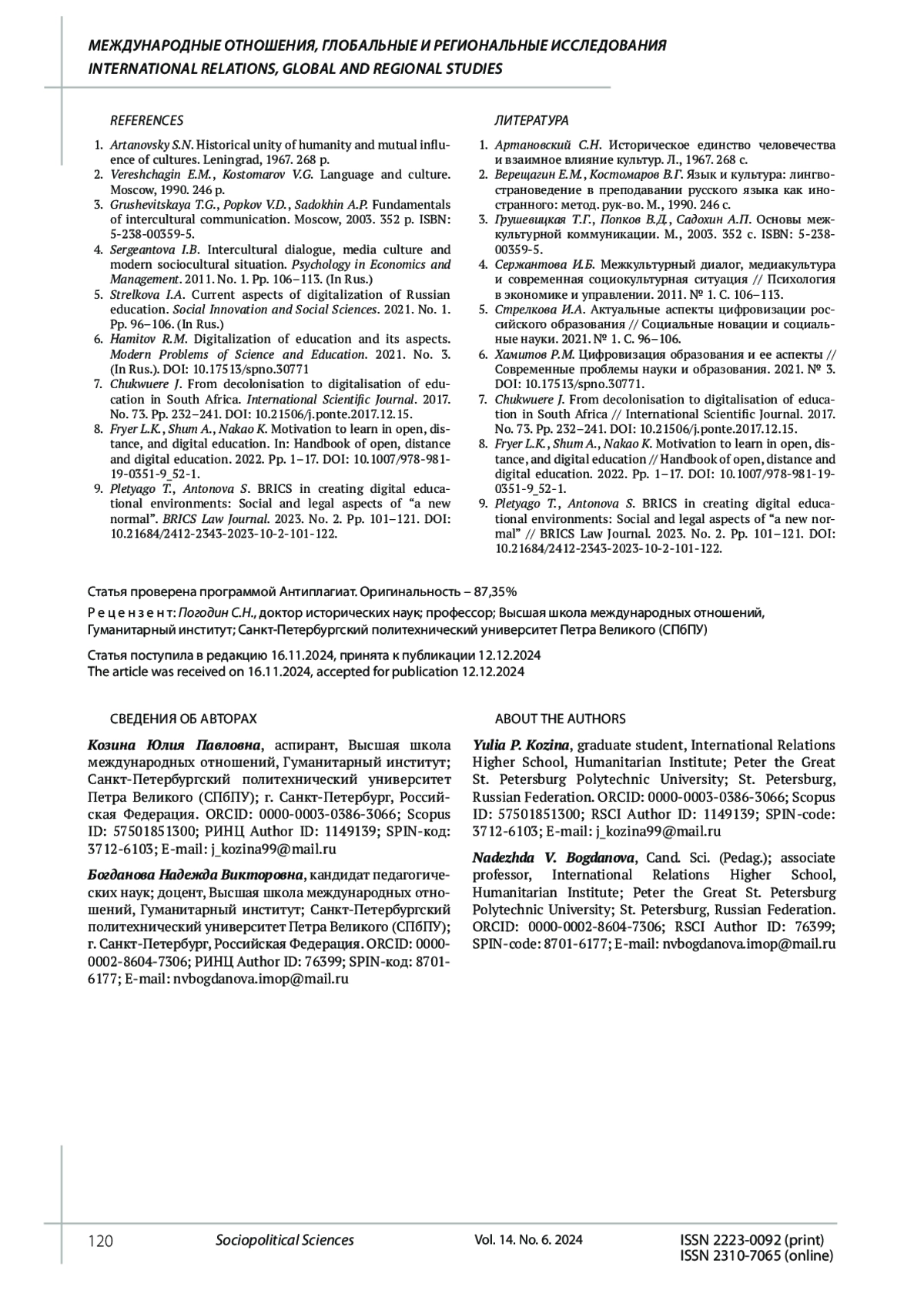 7. Chukwuere J. From decolonisation to digitalisation of education in South Africa. International Scientific Journal. 2017. No. 73. Рp. 232-241. DOI: 10.21506/j.ponte.2017.12.15