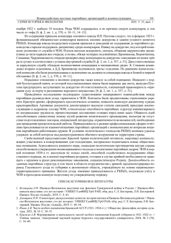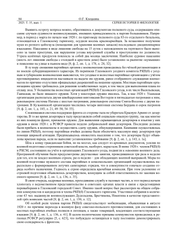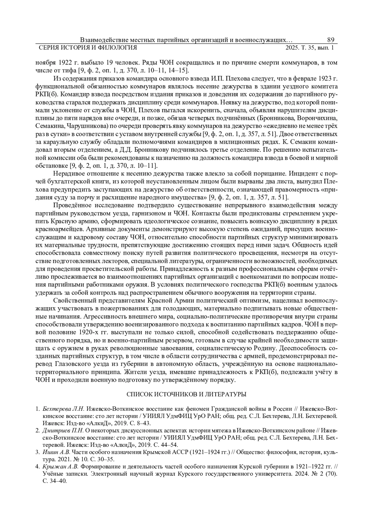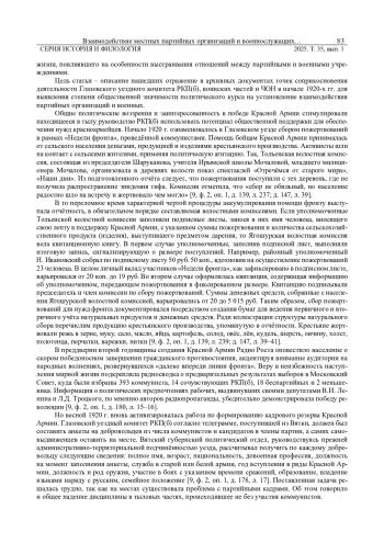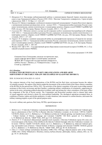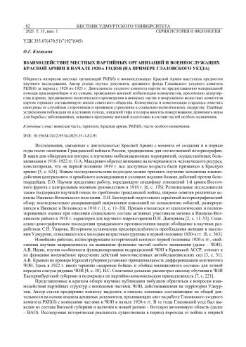 Статья: ВЗАИМОДЕЙСТВИЕ МЕСТНЫХ ПАРТИЙНЫХ ОРГАНИЗАЦИЙ И ВОЕННОСЛУЖАЩИХ КРАСНОЙ АРМИИ В НАЧАЛЕ 1920-Х ГОДОВ (НА ПРИМЕРЕ ГЛАЗОВСКОГО УЕЗДА) (2025)