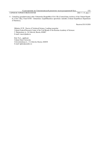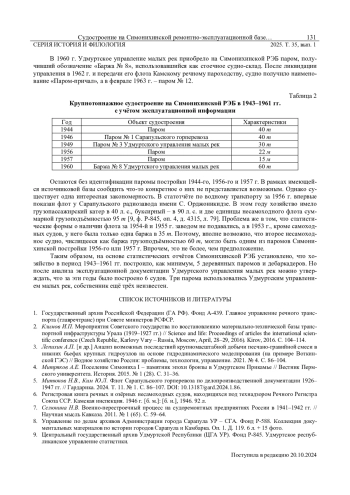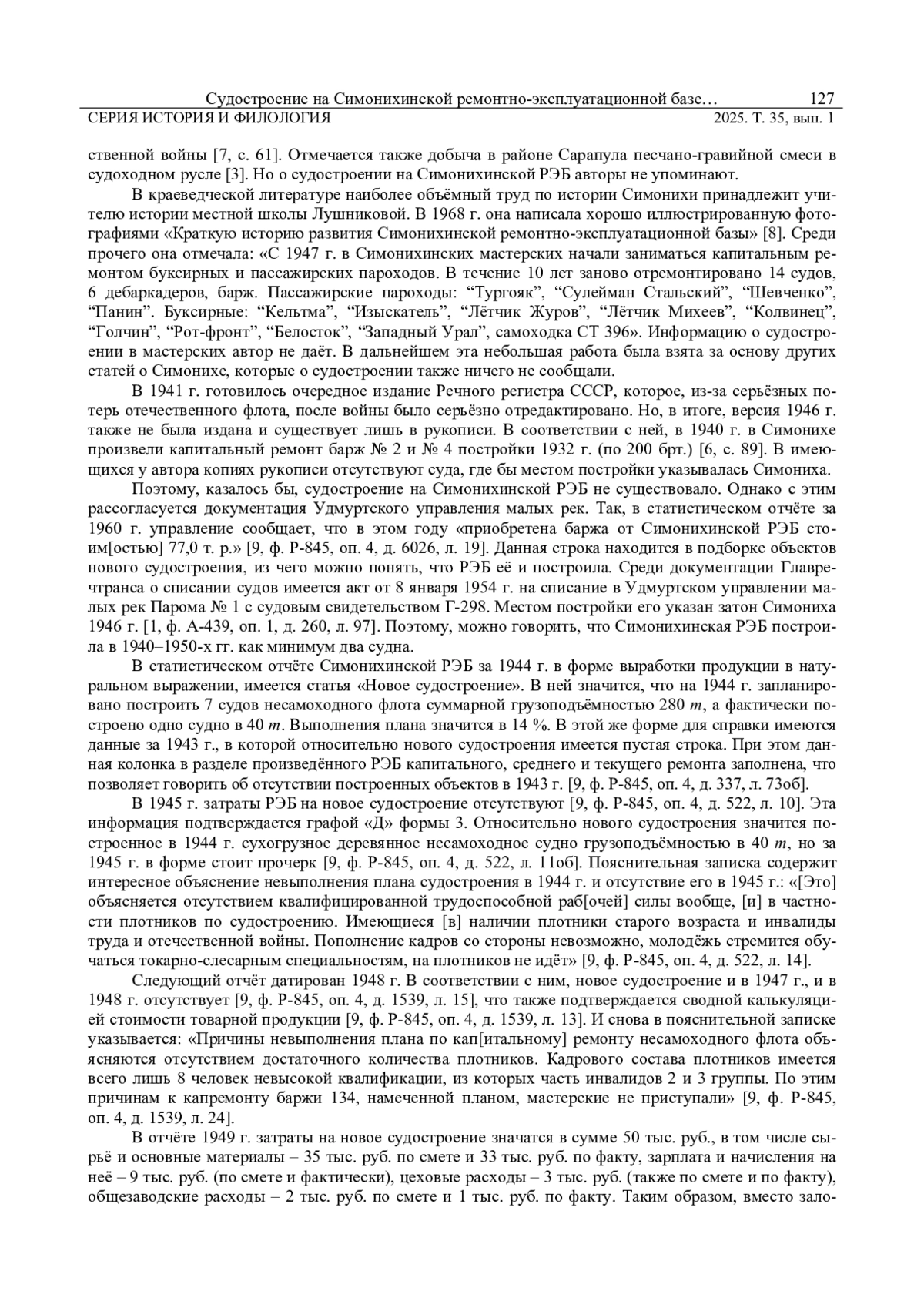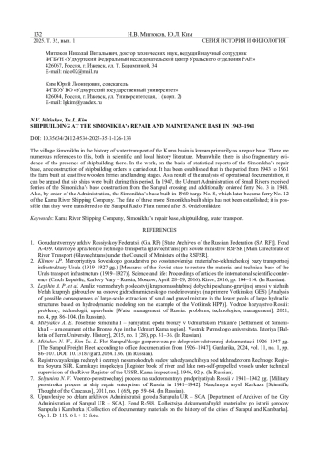 МИТЮКОВ Н. В., КИМ Ю. Л. СУДОСТРОЕНИЕ НА СИМОНИХИНСКОЙ РЕМОНТНО-ЭКСПЛУАТАЦИОННОЙ БАЗЕ В 1943-1961 ГОДАХ // ВЕСТНИК УДМУРТСКОГО УНИВЕРСИТЕТА. СЕРИЯ: ИСТОРИЯ И ФИЛОЛОГИЯ. 2025. Т. 35 № 1