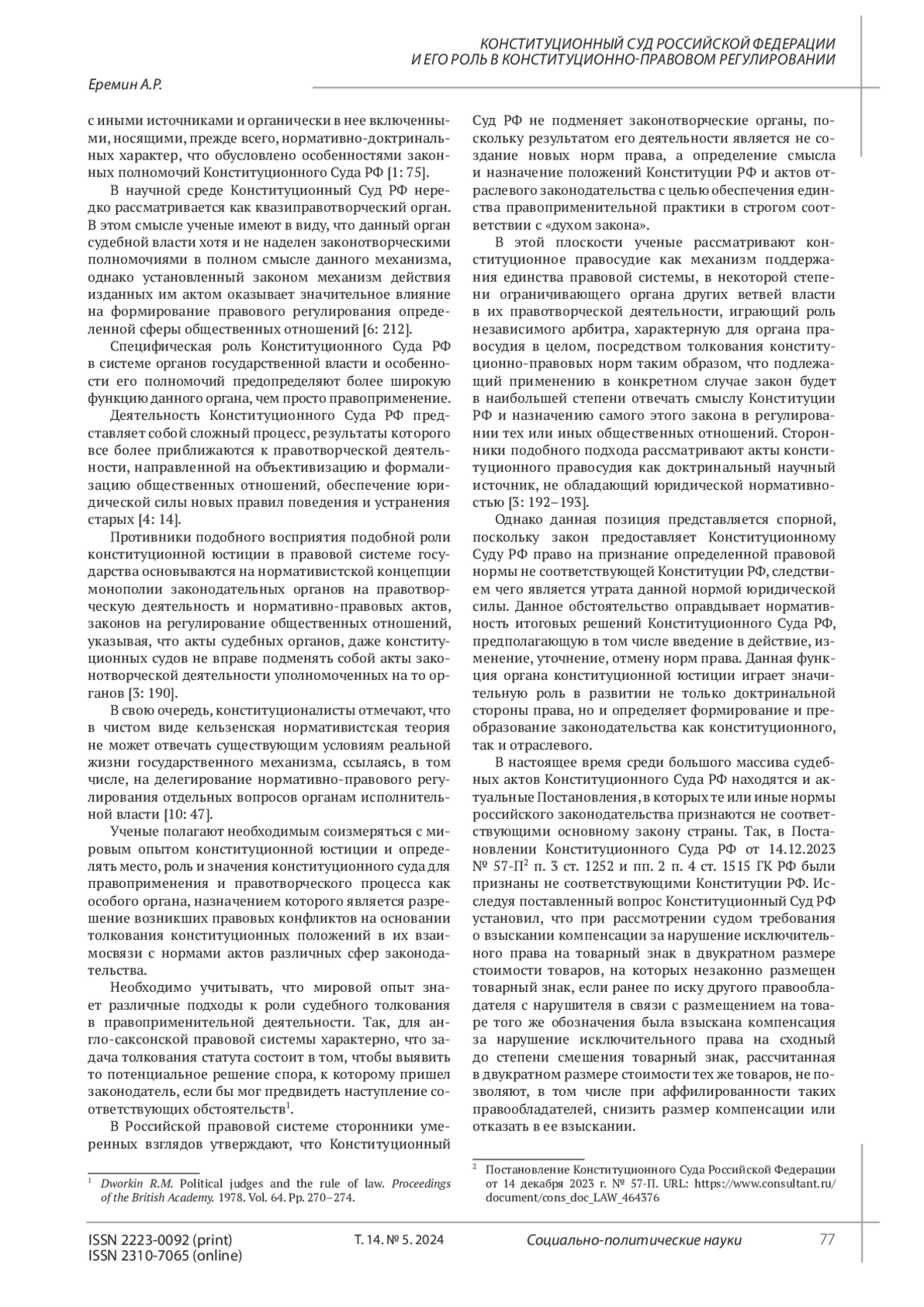 8. Мешков И.В. К вопросу о правовой природе решений Конституционного Суда Российской Федерации // Национальная ассоциация ученых. 2023. № 87-2. С. 67-71. EDN: KIBEOJ