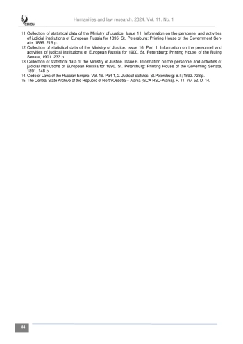 12. Сборник статистических сведений Министерства Юстиции. Выпуск 16. Ч. 1. Сведения о личном составе и о деятельности судебных установлений Европейской России за 1900 г. СПб: Типография Правительствующего Сената, 1901. 233 с.