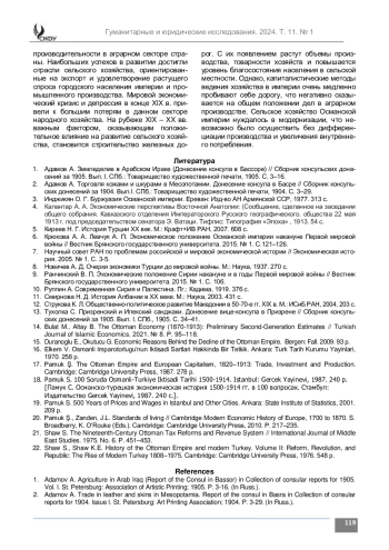 14. Bulat M., Altay B. The Ottoman Economy (1870-1913): Preliminary Second-Generation Estimates // Turkish Journal of Islamic Economics. 2021. № 8. Р. 95-118.