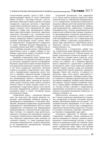 Статья: РЕСУРСЫ И ПРОБЛЕМЫ СТУДЕНЧЕСКОЙ СЕМЬИ: СОЦИАЛЬНО-ПСИХОЛОГИЧЕСКИЙ АНАЛИЗ (2025)