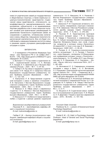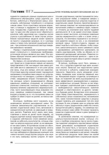 ПАШКОВА Я. А., ГАЙДАР К. М. РЕСУРСЫ И ПРОБЛЕМЫ СТУДЕНЧЕСКОЙ СЕМЬИ: СОЦИАЛЬНО-ПСИХОЛОГИЧЕСКИЙ АНАЛИЗ // ВЕСТНИК ВОРОНЕЖСКОГО ГОСУДАРСТВЕННОГО УНИВЕРСИТЕТА. СЕРИЯ: ПРОБЛЕМЫ ВЫСШЕГО ОБРАЗОВАНИЯ. 2025. № 1