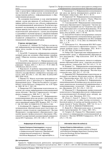 ГАРАЕВА Е. А. ПРОФЕССИОНАЛЬНАЯ ДЕЯТЕЛЬНОСТЬ ПРЕПОДАВАТЕЛЯ УНИВЕРСИТЕТА В ИНФОРМАЦИОННО-КОММУНИКАЦИОННОЙ ОБРАЗОВАТЕЛЬНОЙ СРЕДЕ // САМАРСКИЙ НАУЧНЫЙ ВЕСТНИК. 2024. ТОМ 13, № 4