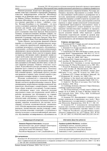 КАЗАКОВА Л. Н. ОБ АКТУАЛЬНОСТИ ИЗУЧЕНИЯ ИНОЯЗЫЧНЫХ ФАМИЛИЙ В ПРОЦЕССЕ ПРЕПОДАВАНИЯ ДИСЦИПЛИНЫ «ИНОСТРАННЫЙ ЯЗЫК В ПРОФЕССИОНАЛЬНОЙ ДЕЯТЕЛЬНОСТИ» В АГРАРНОМ УНИВЕРСИТЕТЕ // САМАРСКИЙ НАУЧНЫЙ ВЕСТНИК. 2024. ТОМ 13, № 4