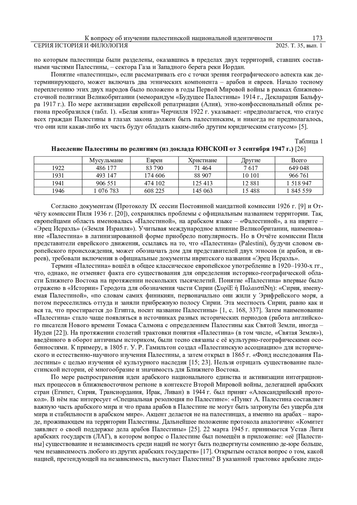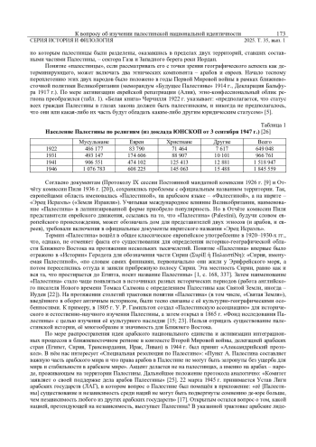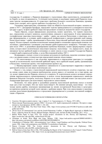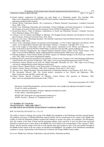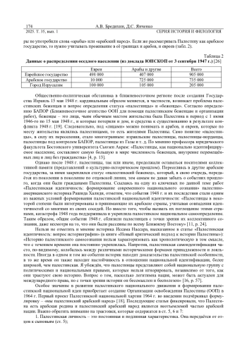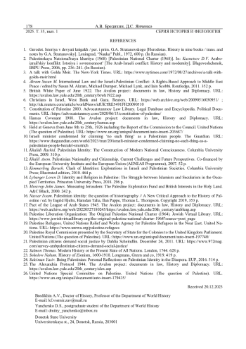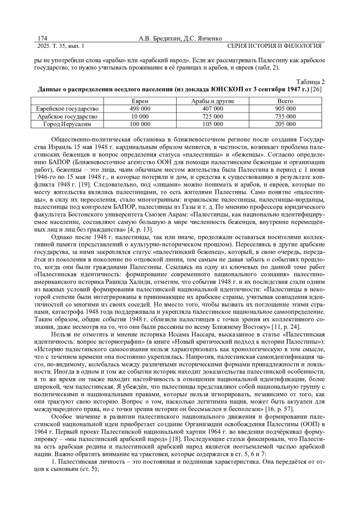 БРЕДИХИН А. В., ЯНЧЕНКО Д. С. «ПАЛЕСТИНЦЫ - КТО ОНИ?»: К ВОПРОСУ ОБ ИЗУЧЕНИИ ПАЛЕСТИНСКОЙ НАЦИОНАЛЬНОЙ ИДЕНТИЧНОСТИ // ВЕСТНИК УДМУРТСКОГО УНИВЕРСИТЕТА. СЕРИЯ: ИСТОРИЯ И ФИЛОЛОГИЯ. 2025. Т. 35 № 1