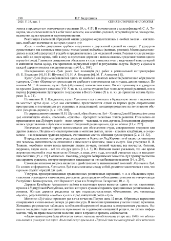 1. Атаманов М.Г. Культ Керемета/Луда в среде удмуртов и его отражение в топонимии // Ежегодник финно-угорских исследований. 2014. № 1. С. 20-35. EDN: SAWXNX