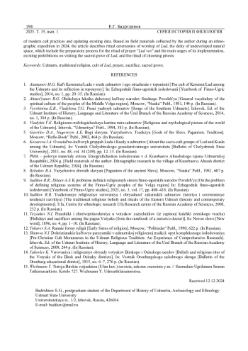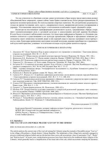 10. Садиков Р.Р. Традиционные религиозные верования и обрядность закамских удмуртов (история и современные тенденции развития). Уфа: ЦЭИ УНЦ РАН, 2008. 232 с. EDN: QPMSGH