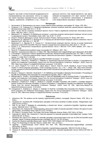 2. Гусаренко С. В., Гусаренко М. К. Предикатно-фреймовое описание линейной семантики художественного нарратива // Филологические науки. 2020. № 3. С. 18-30.
