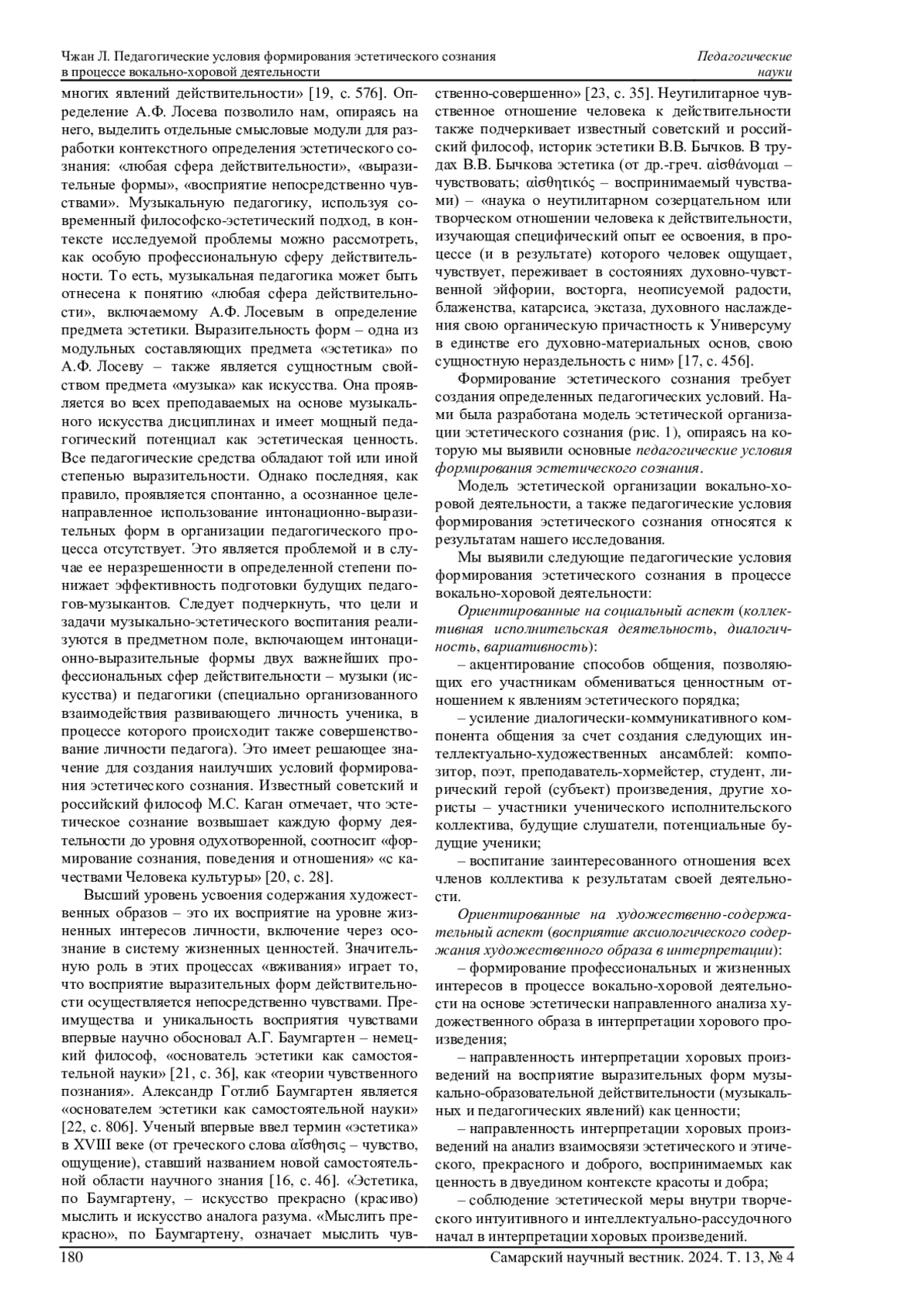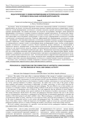 ЧЖАН Л. ПЕДАГОГИЧЕСКИЕ УСЛОВИЯ ФОРМИРОВАНИЯ ЭСТЕТИЧЕСКОГО СОЗНАНИЯ В ПРОЦЕССЕ ВОКАЛЬНО-ХОРОВОЙ ДЕЯТЕЛЬНОСТИ // САМАРСКИЙ НАУЧНЫЙ ВЕСТНИК. 2024. ТОМ 13, № 4