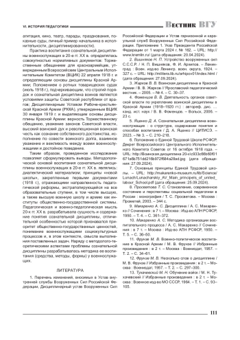 3. Жарков В. В. Воинская дисциплина в Красной Армии / В. В. Жарков // Ярославский педагогический вестник. - 2005. - № 4. - С. 30-37. EDN: JQQIAZ
