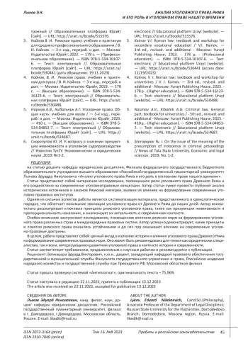 3. Кайнов В. И. Римское право: учебник и практикум для среднего профессионального образования / В. И. Кайнов. - 3-е изд., перераб. и доп. - Москва: Издательство Юрайт, 2023. - 178 с. - (Профессиональное образование). - Текст: электронный // Образовательная платформа Юрайт [сайт]. - URL: https://urait.ru/bcode/530441 (дата обращения: 19.11.2023). ISBN: 978-5-534-16107-6
