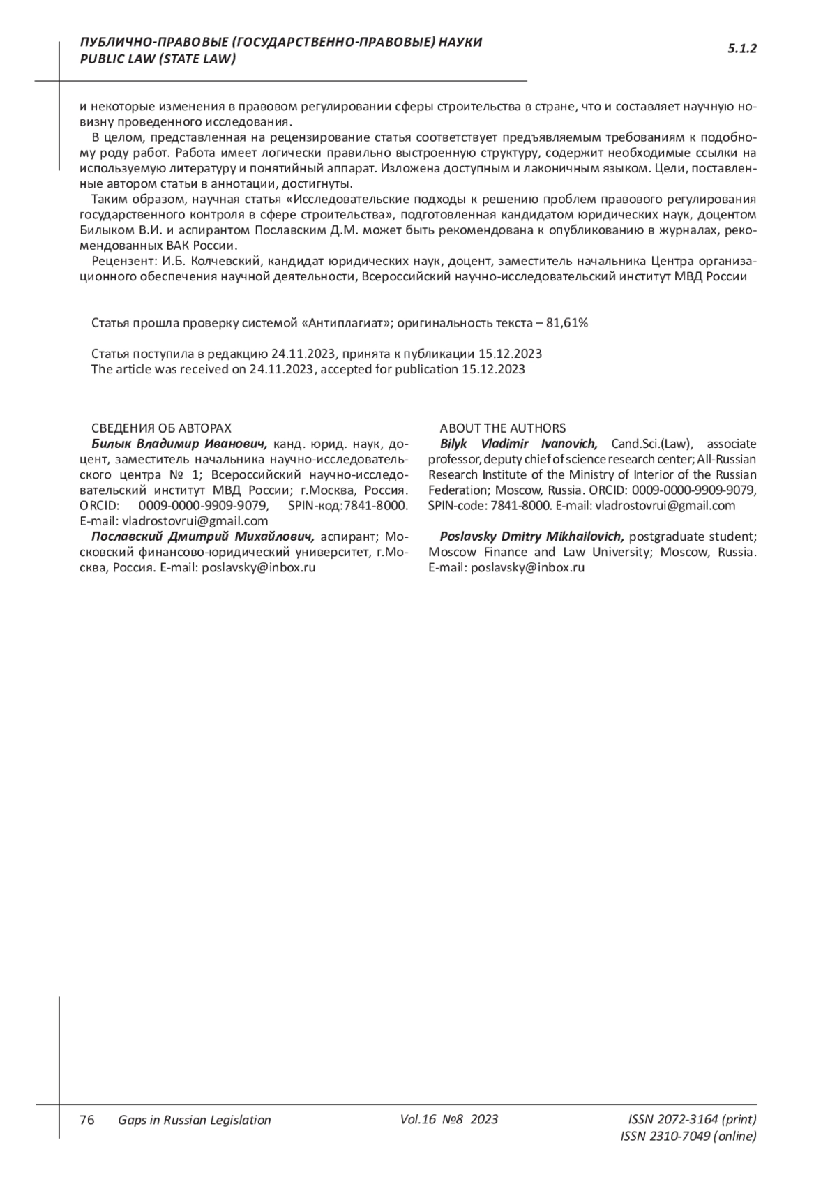 Zakharov E.V. “Administrative control and supervision in the field of construction”: Dis… candidate of legal sciences: Moscow, 2009.