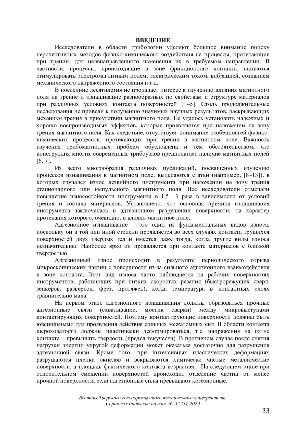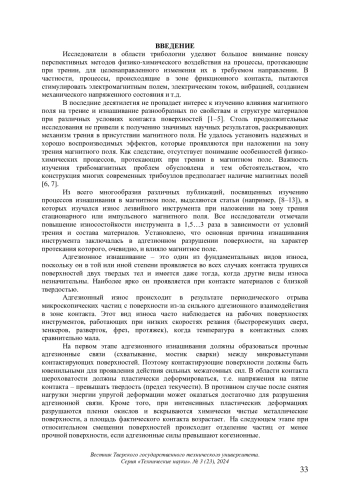 Исследователи в области трибологии уделяют большое внимание поиску перспективных методов физико-химического воздействия на процессы, протекающие при трении, для целенаправленного изменения их в требуемом направлении. В частности, процессы, происходящие в зоне фрикционного контакта, пытаются стимулировать электромагнитным полем, электрическим током, вибрацией, созданием механического напряженного состояния и т. д