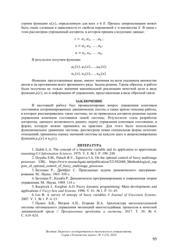 В настоящее время термин «нечеткость» часто применяется для описания технических, экономических и прочих процессов. Это связано с тем, что данная концепция позволяет легко и естественно работать с высококачественными данными, которые во многих случаях являются основным источником неопределенности [1–4]. Методы теории нечетких множеств изначально предназначались для работы в рамках логических методов принятия решений. В ходе последующего совершенствования данного направления они были объединены с методами динамического программирования, что позволило создать способы решения задач, поставленных в рамках работы с детерминированными и стохастическими системами, нечеткими целями и ограничениями. Для понимания последующего развития нечеткого динамического программирования обратимся к обзору [5], в рамках которого обсуждаются задачи управления детерминированными и стохастическими системами с нечетким конечным временем. Помимо этого, важно отметить, что параллельно с совершенствованием теории динамического и математического программирования нечеткие соотношения широко рассматривались в теории принятия решений с нечеткой исходной информацией