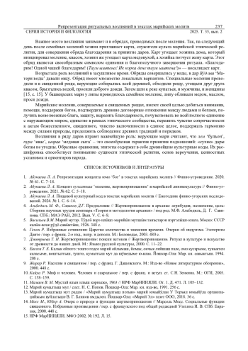 Статья: РЕПРЕЗЕНТАЦИЯ РИТУАЛЬНЫХ ВОЗЛИЯНИЙ В ТЕКСТАХ МАРИЙСКИХ МОЛИТВ (2025)