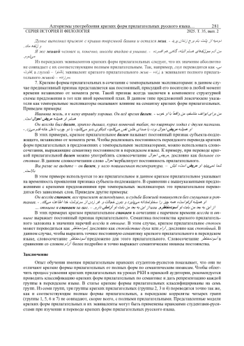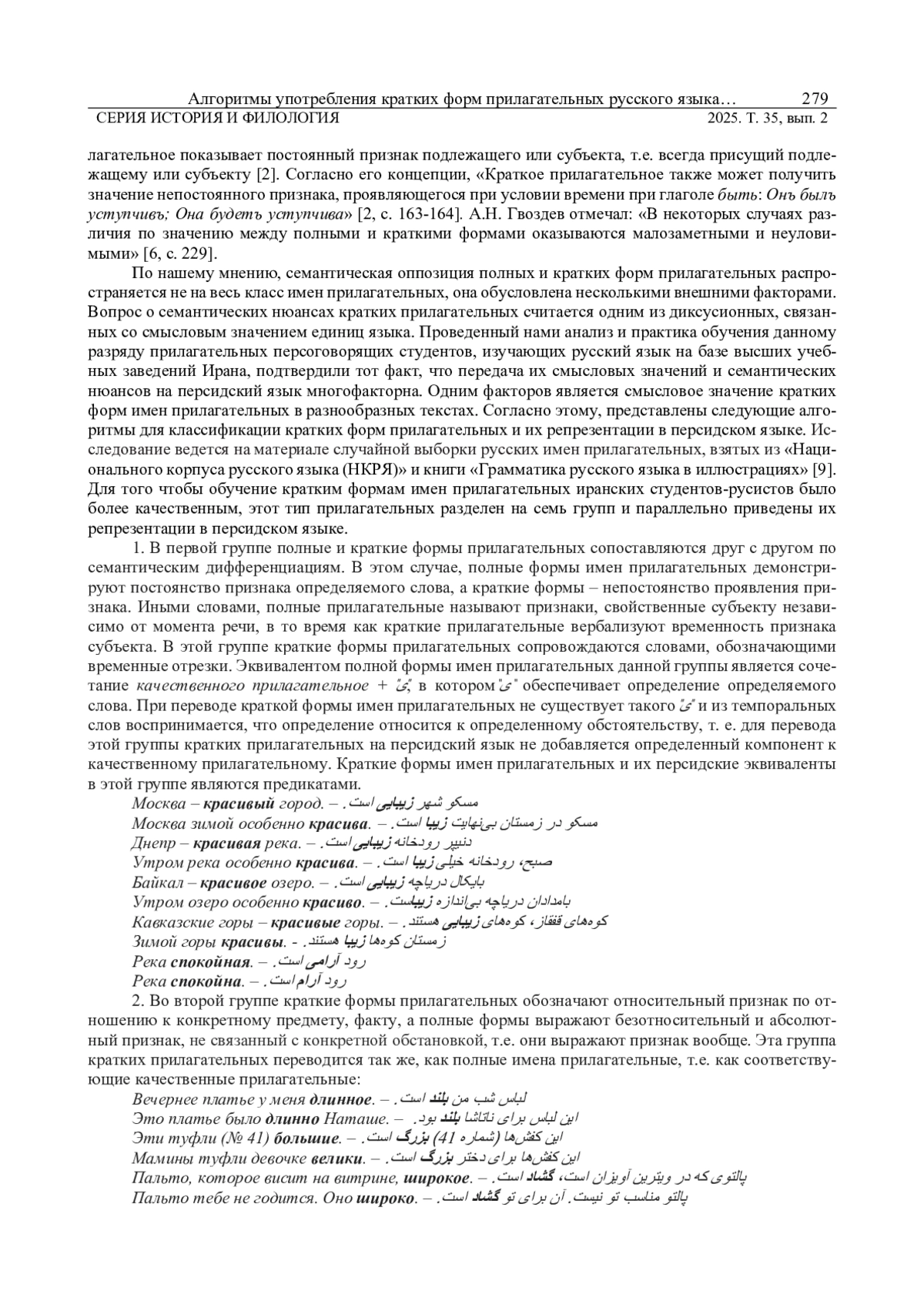 Статья: АЛГОРИТМЫ УПОТРЕБЛЕНИЯ КРАТКИХ ФОРМ ПРИЛАГАТЕЛЬНЫХ РУССКОГО ЯЗЫКА И СПОСОБЫ ИХ РЕПРЕЗЕНТАЦИИ В ПЕРСИДСКОМ ЯЗЫКЕ (2025)