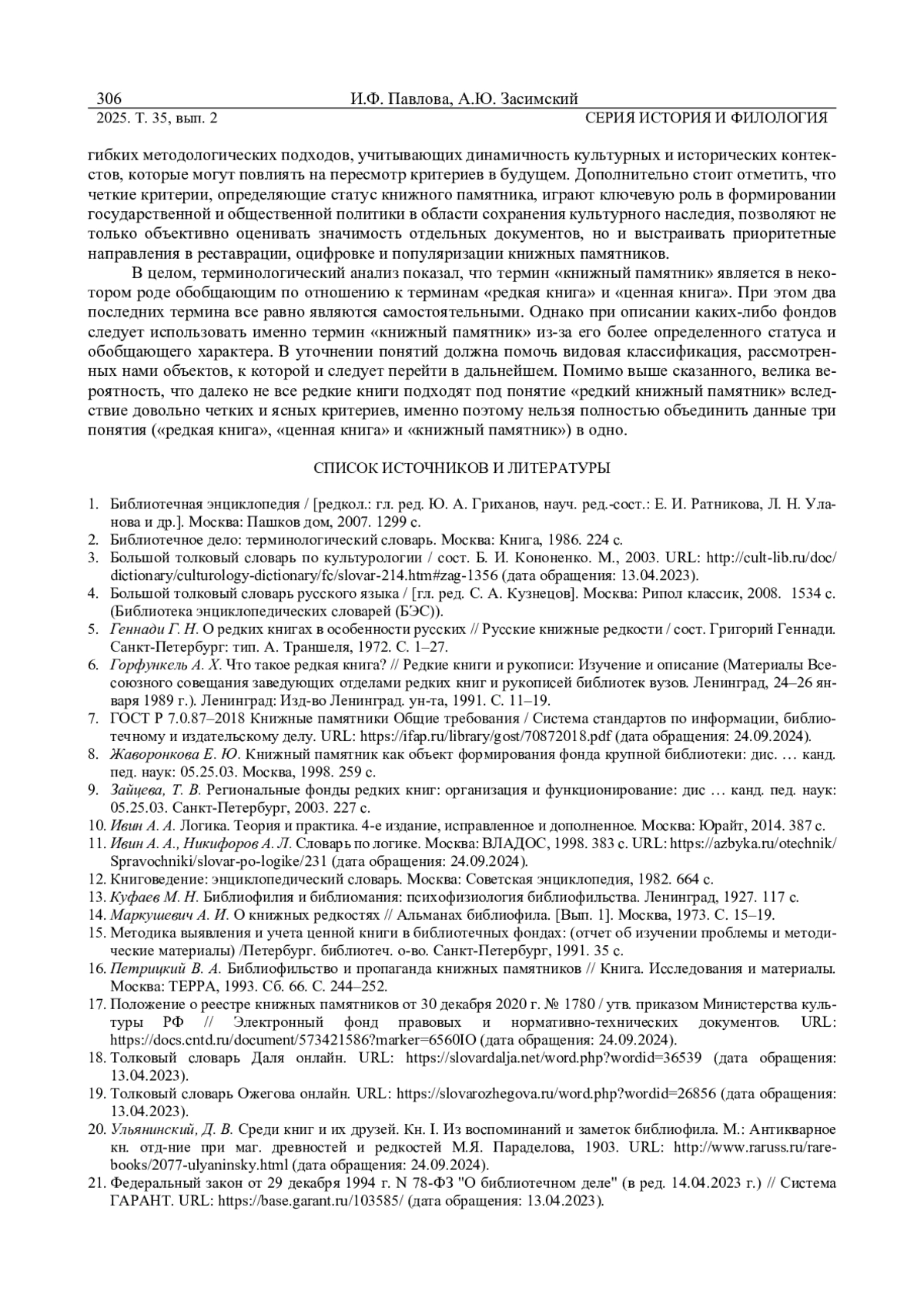 7. ГОСТ Р 7.0.87-2018 Книжные памятники Общие требования / Система стандартов по информации, библиотечному и издательскому делу. URL: https://ifap.ru/library/gost/70872018.pdf (дата обращения: 24.09.2024).
