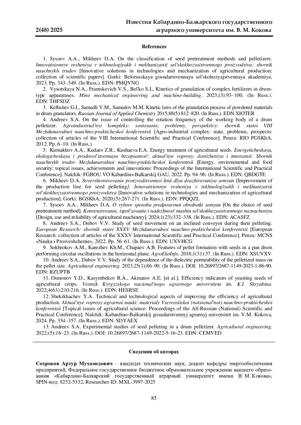 Журнал: ИЗВЕСТИЯ КАБАРДИНО-БАЛКАРСКОГО ГОСУДАРСТВЕННОГО АГРАРНОГО УНИВЕРСИТЕТА ИМ. В. М. КОКОВА