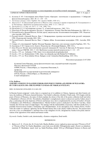 В творчестве русских восточных эмигрантов можно увидеть неоднократное использование, помимо китайской, японской и других восточных культур, традиций западной классической литературы. Сборник Юрия Галича «Орхидея» (Владивосток, 1921) начинается со стихотворения «Цветы наслажденья», название которого объясняет выбор заглавия самого поэтического сборника и отсылает к «Цветам зла» Бодлера. Тем не менее бодлеровский метафорический контекст почти не используется Галичем, не играет контрастно на изображении цветов и человеческих пороков, однако дополняется перекличкой с гётевскими «Нашел» («Gefunden») и «Дикая роза» («Heidenröslein»). Стихотворение Николая Светлова посвящено цветку Ван-Хао, который мгновенно гибнет от прикосновения грубых пальцев. Аналогия с неукротимостью страстей, с их смертоносной силой, вероятно, заимствована из гётевских «Gefunden» и «Heidenröslein». Светлов в описании китайского цветка отсылает читателя к афоризму Конфуция, однако и западная литературная линия отчетливо проступает в тексте. Страсть оказывается пороком, как у Бодлера, а грубая сила - «царством зла», обозначенным Гёте в поэтической интериоризации противопоставления природного и человеческого мира.