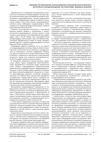 Статья: ПРАВОВОЕ РЕГУЛИРОВАНИЕ ИСПОЛЬЗОВАНИЯ ТЕХНОЛОГИЙ ИСКУССТВЕННОГО ИНТЕЛЛЕКТА В МЕЖДУНАРОДНОМ ЧАСТНОМ ПРАВЕ: ВЫЗОВЫ И РЕШЕНИЯ (2023)