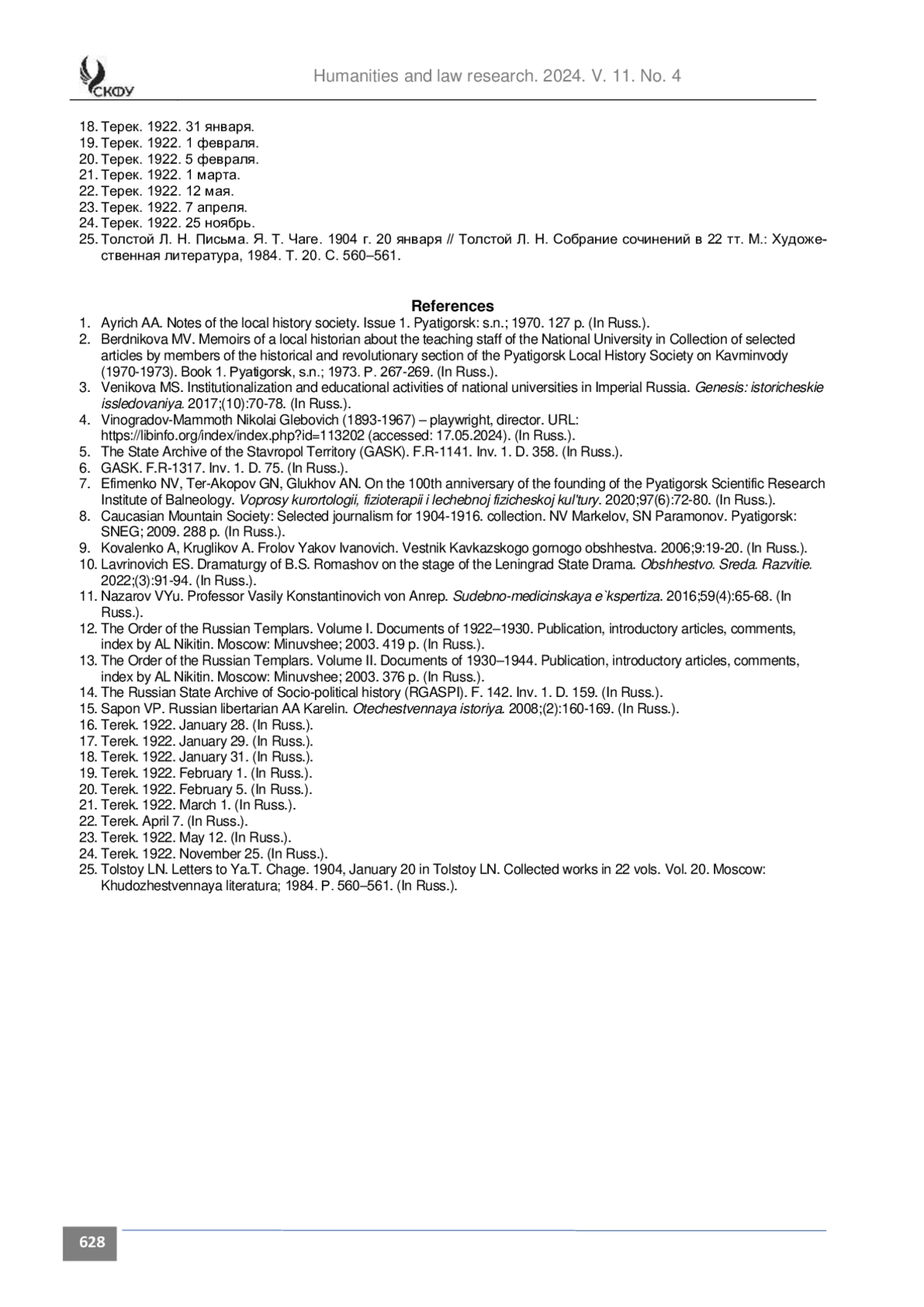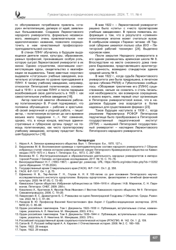 АКОПЯН В. З., АКОПЯН З. В., ЕРМАКОВ В. П. К ИСТОРИИ ПЯТИГОРСКОГО ЛЕРМОНТОВСКОГО НАРОДНОГО УНИВЕРСИТЕТА // ГУМАНИТАРНЫЕ И ЮРИДИЧЕСКИЕ ИССЛЕДОВАНИЯ. 2024. ТОМ 11, № 4