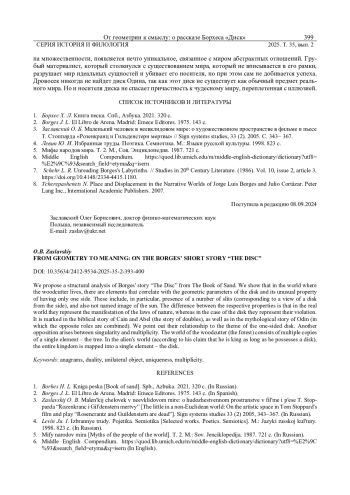 7. Schehr L. R. Unreading Borges’s Labyrinths. // Studies in 20th Century Literature. (1986). Vol. 10, issue 2, article 3. DOI: 10.4148/2334-4415.1180