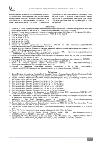 1. Баррет Т. М. Линия неопределенности: северокавказский «фронтир» России // Американская русистика: вехи историографии последних лет. Антология. Т. 2. Самара: Самарский университет, 2000. С.163-195.