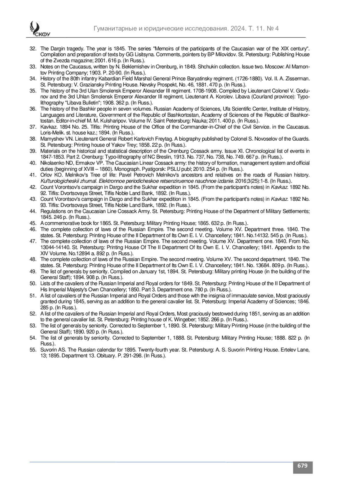 40. Николаенко Н. Д., Ермаков В. П. Кавказское Линейное казачье войско: история формирования, система управления и служебные обязанности (начало XVIII - 1860 г.). Пятигорск: ПГЛУ, 2010. 254 с.