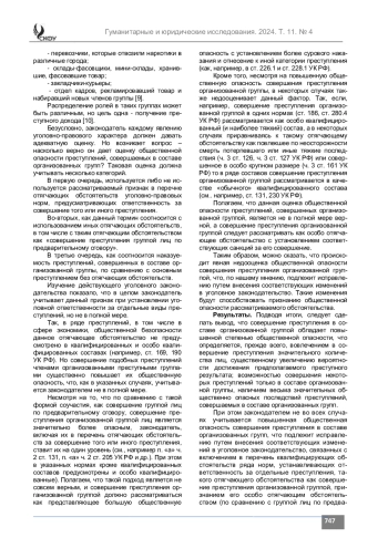 Результаты. Проведенное исследование позволяет сделать вывод, что, несмотря на активное использование рассматриваемого понятия, законодателем не во всех случаях учитывается повышенная общественная опасность совершения преступления организованной группой, что подлежит исправлению путем внесения соответствующих изменений в уголовное законодательство, связанных с включением в перечень квалифицирующих обстоятельств ряда норм, устанавливающих ответственность за отдельные преступления, такого отягчающего обстоятельства как совершение преступления организованной группой, признанием его особо отягчающим обстоятельством с установлением соответствующих санкций.