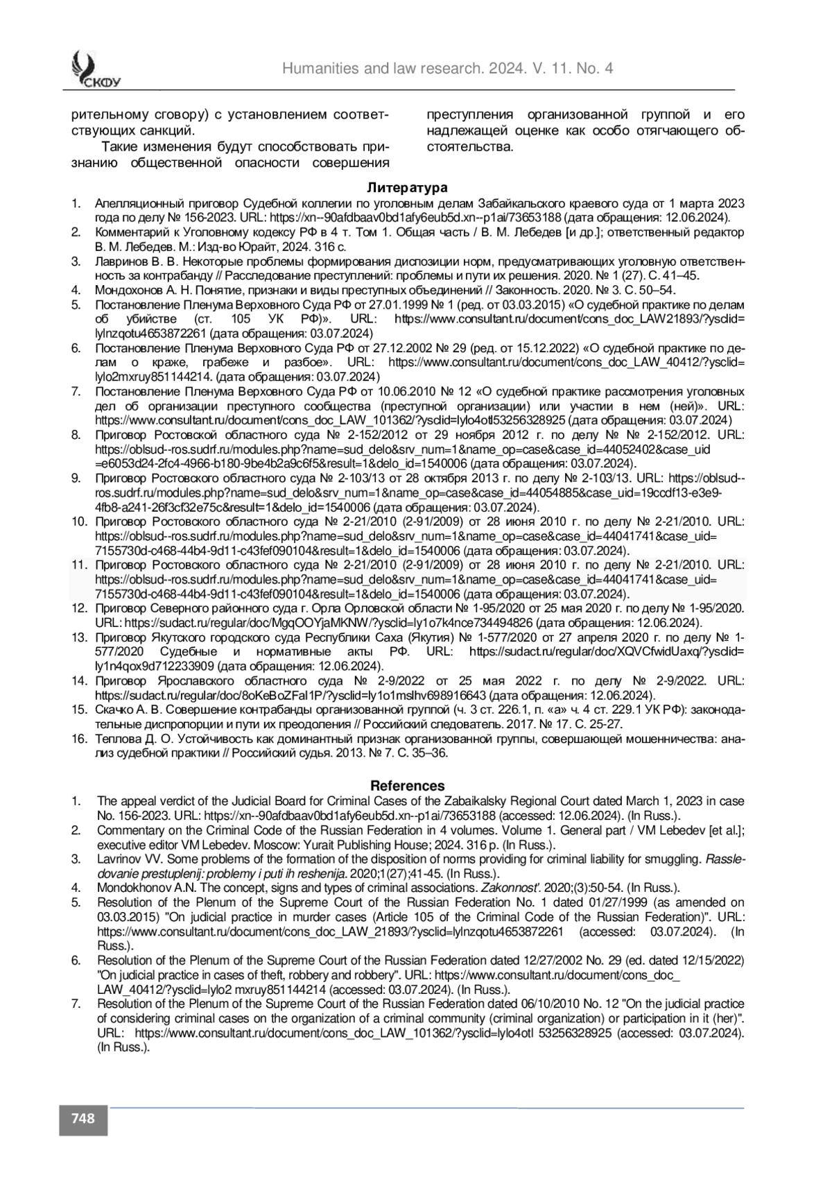 16. Теплова Д. О. Устойчивость как доминантный признак организованной группы, совершающей мошенничества: анализ судебной практики // Российский судья. 2013. № 7. С. 35-36.