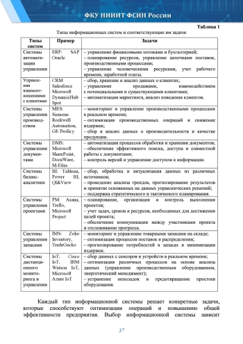 Внедрение информационных систем становится необходимым условием для устойчивого развития предприятий в современном мире, так как оно обеспечивает оптимизацию процессов, повышение эффективности, улучшение качества принимаемых решений и адаптацию к изменяющимся условиям рынка [3, 4, 7, 10]. Внедрение информационных систем способствует оптимизации бизнес-процессов за счет автоматизации рутинных задач, что приводит к снижению временных затрат и снижению вероятности ошибок, тем самым повышая общую производительность. Современные информационные системы оптимизируют управление цепочкой поставок, что значительно увеличивает скорость и эффективность процессов от поставки сырья до доставки готовой продукции потребителю.