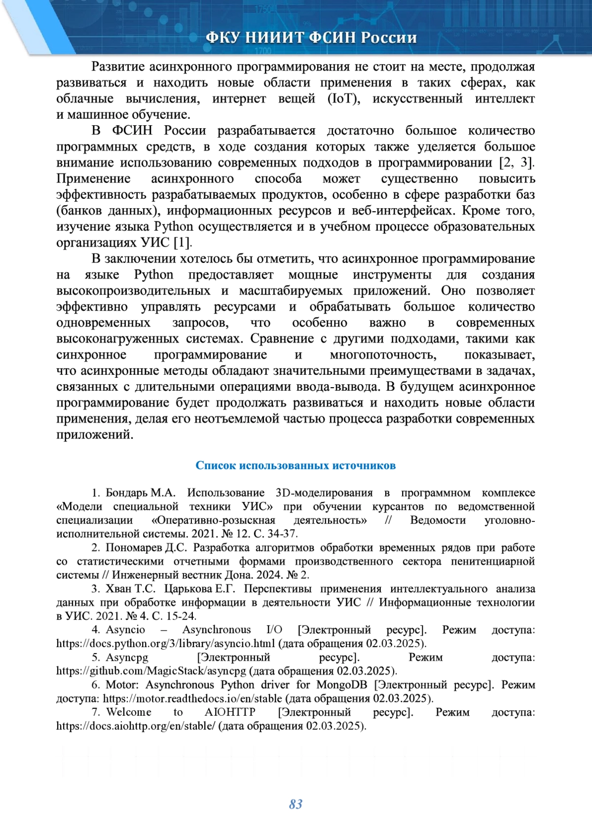 Статья: АСИНХРОННОЕ ПРОГРАММИРОВАНИЕ НА ЯЗЫКЕ PYTHON: ПРИНЦИПЫ, ПРИМЕНЕНИЕ И РАЗВИТИЕ (2025)