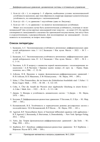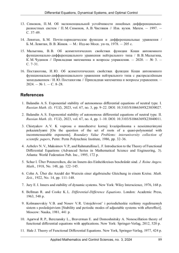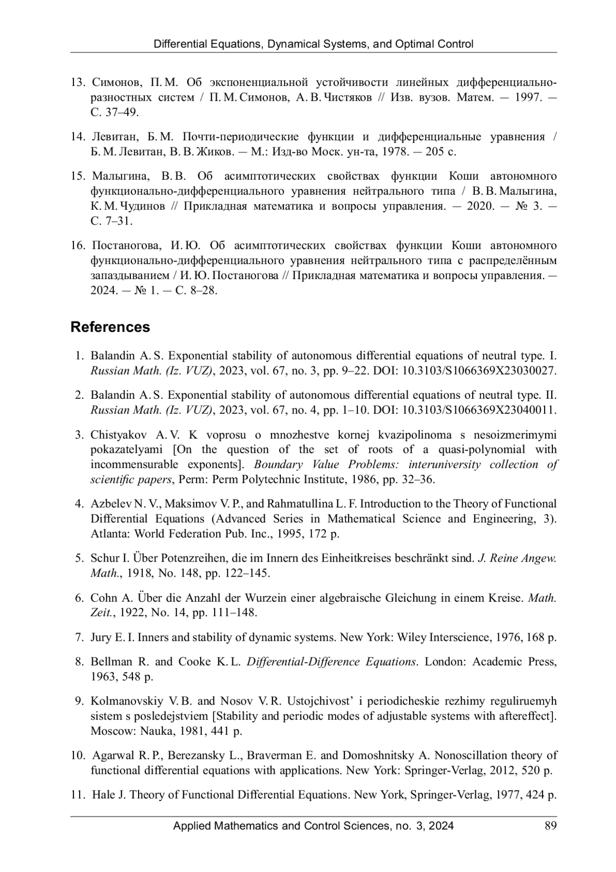 2. 	Баландин, А. С. Экспоненциальная устойчивость автономных дифференциальных уравнений нейтрального типа. II / А. С. Баландин // Изв. вузов. Матем. - 2023. - № 4. - С. 3-14.  EDN: BJZQHA