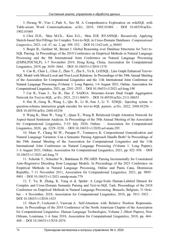 3. A Comprehensive Exploration on wikiSQL with Table-aware Word Contextualization / W. Hwang, J. Yim, S. Park, M. Seo // arXiv. - 2019. - 1902.01069. 10.48550/ arXiv.1902.01069. DOI: 10.48550/arXiv.1902.01069