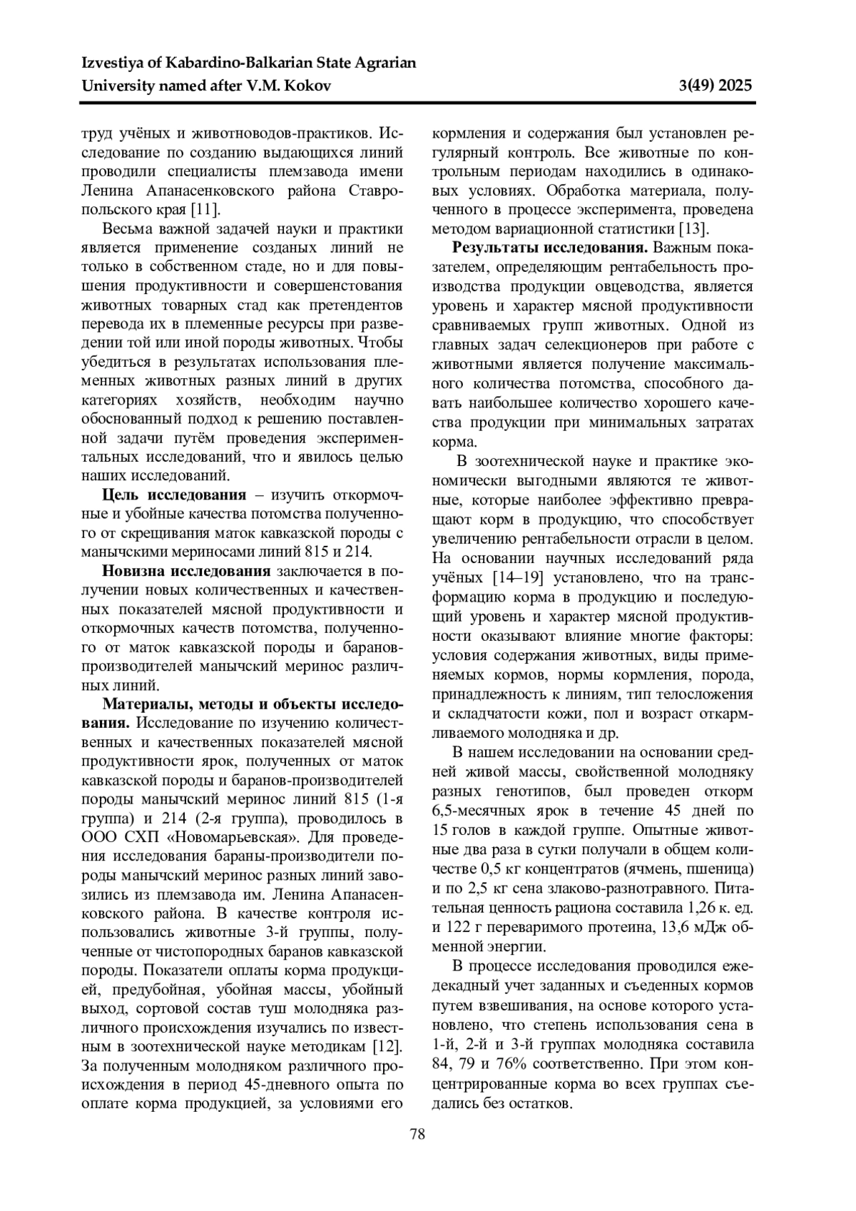 Журнал: ИЗВЕСТИЯ КАБАРДИНО-БАЛКАРСКОГО ГОСУДАРСТВЕННОГО АГРАРНОГО УНИВЕРСИТЕТА ИМ. В. М. КОКОВА