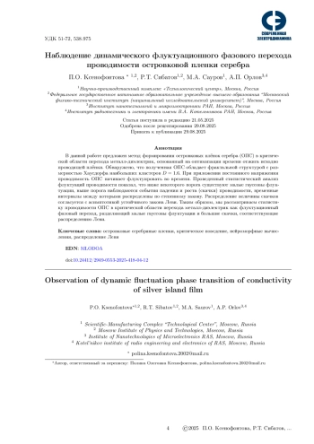 5. 	Ксенофонтова П.О., Василевская Ю.О., Сибатов Р.Т. Кинетическая модель эволюции филаментов в перколяционном массиве наночастиц серебра //Ученые записки физического ф-та Московского университета. 2024, №4, 2441401.