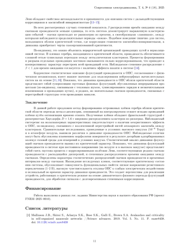 1. 	Mallinson J.B., Shirai S., Acharya S.K., Bose S.K., Galli E., Brown S.A. Avalanches and criticality in self-organized nanoscale networks //Science advances. 2019. Vol. 5. No. 11. P. eaaw8438. DOI: 10.1126/sciadv.aaw843811
