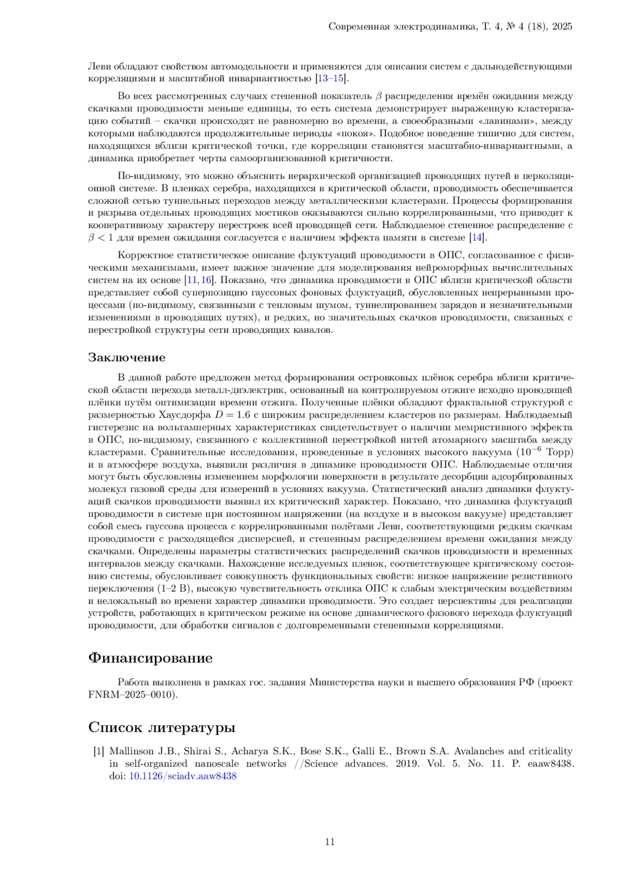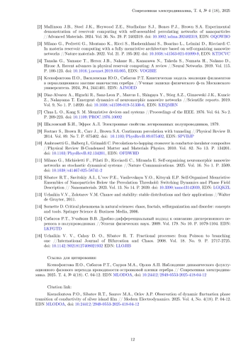 11. 	Milano G., Michieletti F., Pilati D., Ricciardi C., Miranda E. Self-organizing neuromorphic nanowire networks as stochastic dynamical systems // Nature Communications. 2025. Vol. 16. No 1. P. 3509. DOI: 10.1038/s41467-025-58741-2