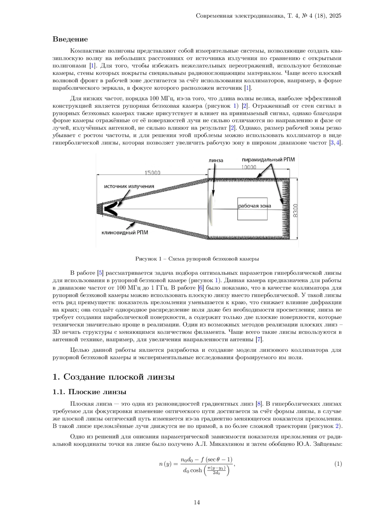 14. 	Моделирование распределения поля в рабочей зоне рупорной безэховой камеры с линзой. / Н.П. Балабуха, Н.Л. Меньших, В.С. Солосин //Антенны. 2017. № 2 (236). С. 42- 49.