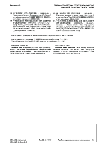 10. 刘宝存 岑宇发布. 以数字素养框架推动数字化人才培养. -中国教育新闻网-中国教育报. - 2023.02.27. - [Электронный ресурс] - Режим доступа: URL: http://m.jyb.cn/rmtzgjyb/202302/t20230227_2111004461_wap.html (дата обращения: 10.06.2023).