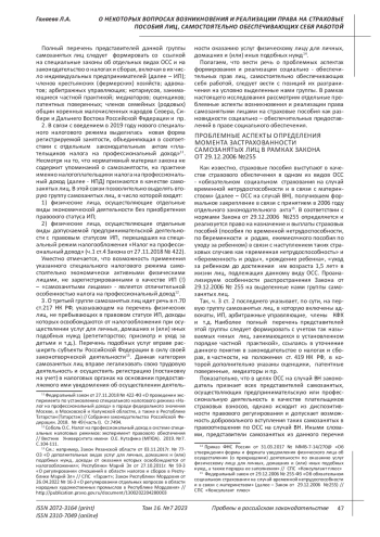 Статья посвящена особенностям правовой регламентации социально - обеспечительных отношений с участием лиц, самостоятельно обеспечивающих себя работой, в частности, отношений, связанных с назначением страховых пособий как вида социально- обеспечительных предоставлений в праве социального обеспечения. Цели и задачи заявленной темы исследования разрешаются в контексте авторской классификации самозанятых лиц, которая произведена со ссылкой на действующее российское законодательство. Анализируются особенности правоотношений по обязательному социальному страхованию на случай временной нетрудоспособности и в связи с материнством с участием лиц, самостоятельно обеспечивающих себя работой в рамках Закона от 29. 12.2006 г. № 255-ФЗ. Акцентируется внимание на проблеме определения момента возникновения юридического факта застрахованности самозанятых лиц. Анализируется судебная практика, связанная с определением права на страховые пособия в первом календарном году вступления самозанятых в правоотношения по данному виду обязательного социального страхования. В результате исследования автор приходит к выводу о необходимости совершенствования законодательства с целью создания правовых условий для распространения упомянутого закона на иные категории (группы) самозанятых лиц, в частности на лиц, выступающих в качестве плательщиков налога на профессиональный доход.