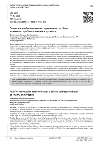 Antonova N.V. On the role of a fixed payment to an insurance pension in establishing a sufficient level of pension provision for working citizens / N.V. Antonova // Russian and international law: general and special: Materials of the All-Russian Scientific and Practical Conference in memory of Professor F.M.. Rudinsky, Moscow, April 17, 2019. - Moscow: Without publishing house, 2019. - P. 380-386.