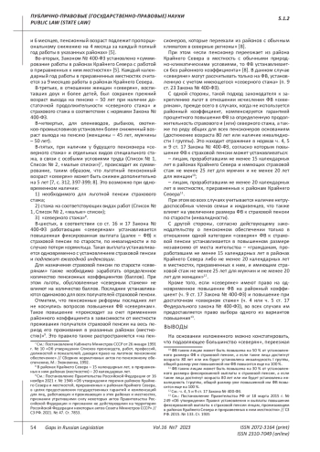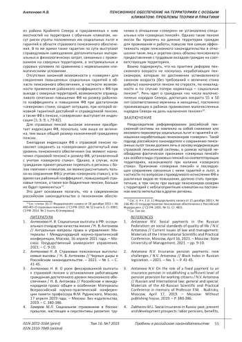 Отметим, что такие качественные особенности получателя пенсии, как проживание и (или) работа в особых природно-климатических условиях, в ходе реформирования пенсионной системы Российской Федерации не в полной мере учитываются законодателем [7; 9].