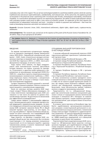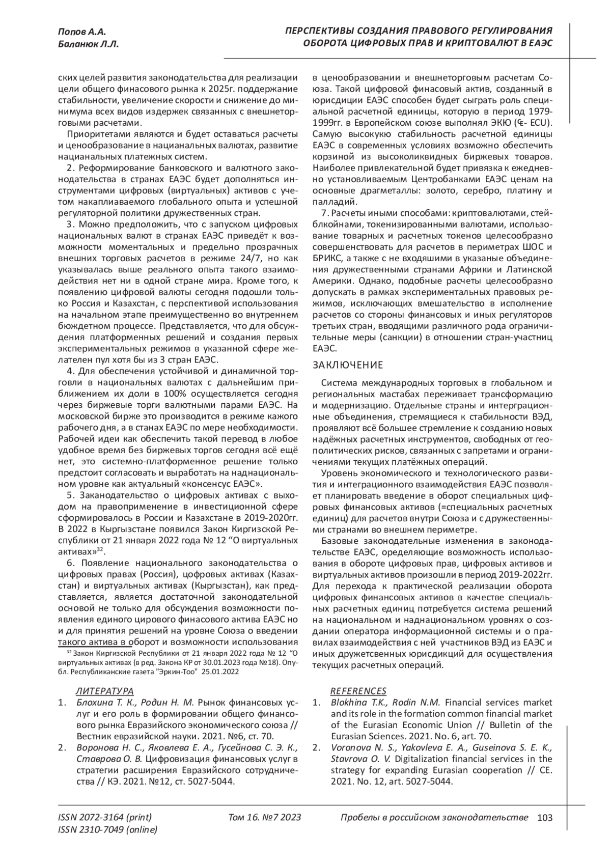 2. 	Воронова Н. С., Яковлева Е. А., Гусейнова С. Э. К., Ставрова О. В. Цифровизация финансовых услуг в стратегии расширения Евразийского сотрудничества // КЭ. 2021. №12, ст. 5027-5044.