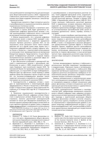 1. 	Блохина Т. К., Родин Н. М. Рынок финансовых услуг и его роль в формировании общего финансового рынка Евразийского экономического союза // Вестник евразийской науки. 2021. №6, ст. 70. EDN: FWRTGF
