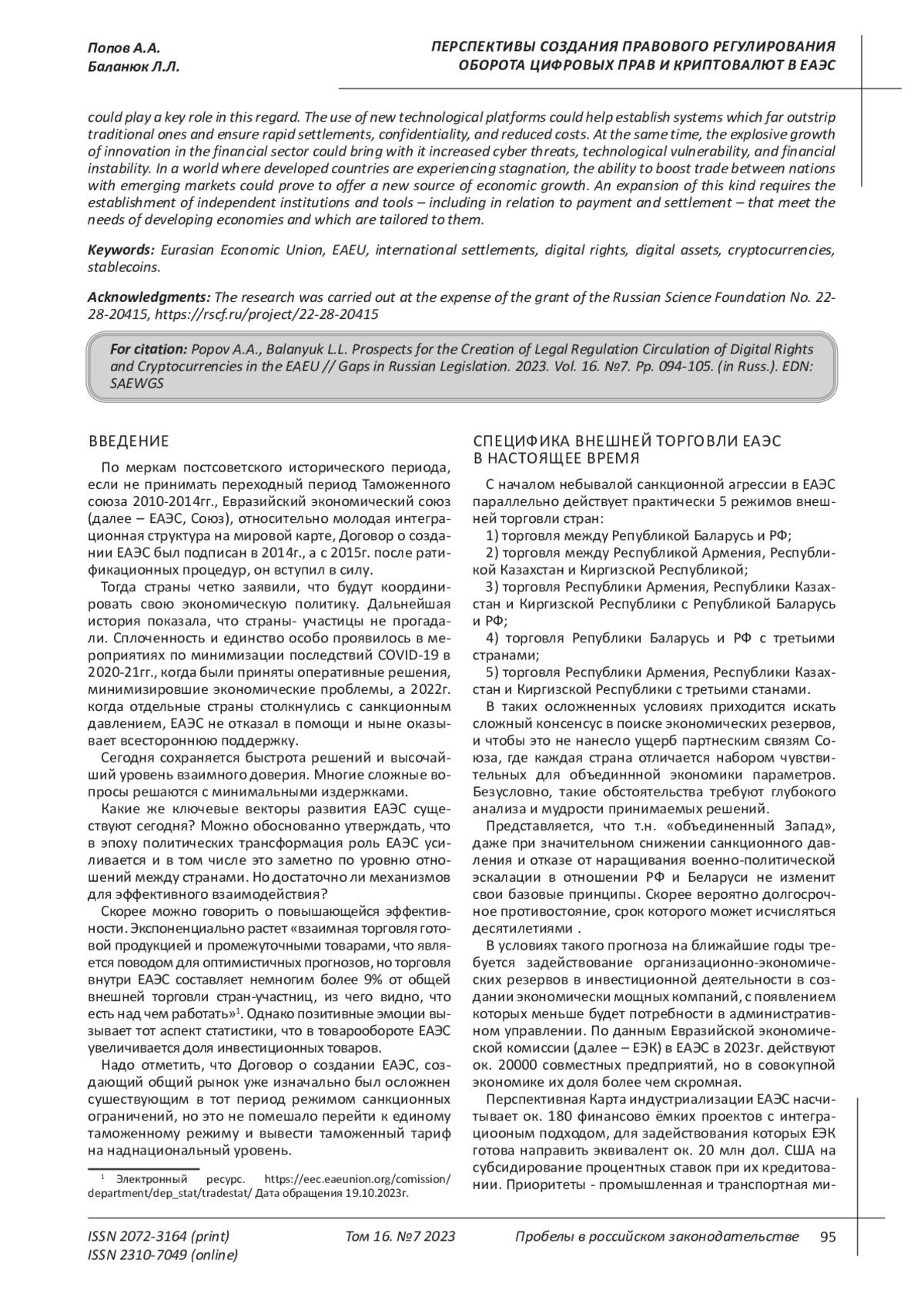 Kurbanov, R. A. Status of the operator of the information system in which digital financial assets are being issued / Kurbanov R. A., Naletov K. I. // Journal of Russian Law. - 2022. - T. 26, No. 12. - P. 45-57. -. DOI: 10.12737/jrl.2022.127 EDN: CWGNQM