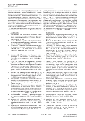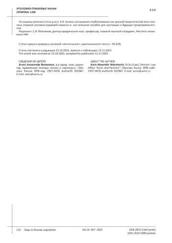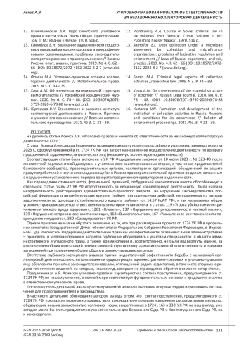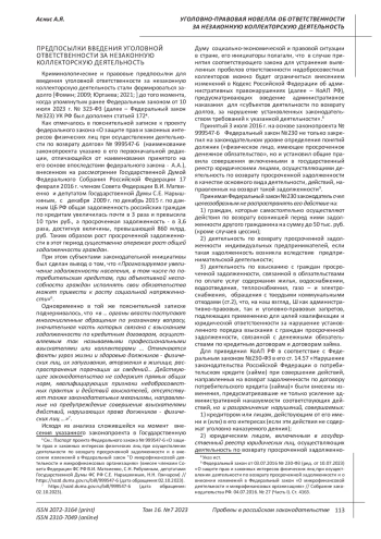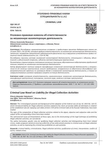 АСНИС А. Я. УГОЛОВНО-ПРАВОВАЯ НОВЕЛЛА ОБ ОТВЕТСТВЕННОСТИ ЗА НЕЗАКОННУЮ КОЛЛЕКТОРСКУЮ ДЕЯТЕЛЬНОСТЬ // ПРОБЕЛЫ В РОССИЙСКОМ ЗАКОНОДАТЕЛЬСТВЕ. 2023. Т. 16 № 7 (42 СТ.)
