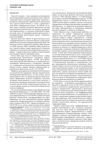 Статья: УГОЛОВНО-ПРАВОВАЯ НОВЕЛЛА ОБ ОТВЕТСТВЕННОСТИ ЗА НЕЗАКОННУЮ КОЛЛЕКТОРСКУЮ ДЕЯТЕЛЬНОСТЬ (2023)